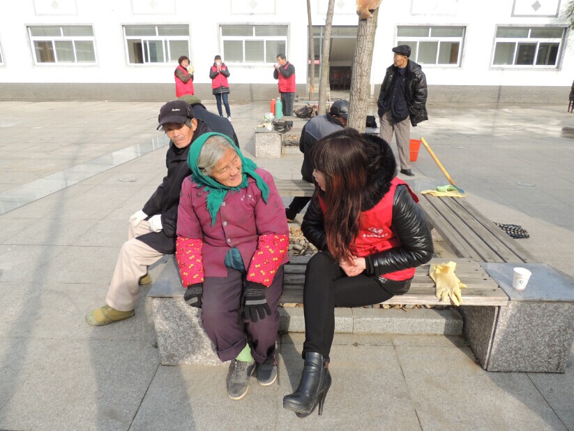 到了敬老院里,進行大致的分工后,就開始熱火朝天的忙碌起來。有的幫助擦玻璃,有的忙著打掃墻體欄桿衛(wèi)生,有的清理院內樓內的場地過道和綠化帶雜物,還有的義工為行動不便的老人打開水。雖然天氣干冷,但似乎毫不影響大家伙的干勁,經過一個多小時的努力,將敬老院里外打掃的干干靜靜。之后在休息的時間,義工們三三兩兩的賠院里的老人聊天談心,回憶他們往年的崢嶸歲月,或是近期的樂呵事兒,在融洽祥和的氛圍中結束了此次的義工社之行。