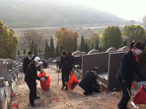 2013年4月4日,金太陽義工社在得知清明祭祀人員多、環(huán)境不理想的消息后,社員們自發(fā)要求放棄休息的時(shí)間前往陵園,為城市環(huán)境獻(xiàn)出自己的一份力量。