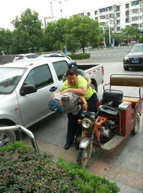 二零一五年九月一日正午,天氣悶熱,一位高位截肢的殘疾人開著殘疾車在聯(lián)通大廈門前,東張西望、左顧右盼……就在這時,正在維持車輛秩序的金太陽兩名保安主動上前問明來意,立馬攙扶背著他去營業(yè)廳交費,交完費后又將他背回殘疾車上,此時我們的保安同志已是汗流浹背,在場的業(yè)主、客戶無不豎起大拇指稱贊。而此并非他們第一次這么助人為樂了,當我們要報道宣傳這種正能量的精神時,他們卻謙虛的說,這是我們金太陽保安應該做的。