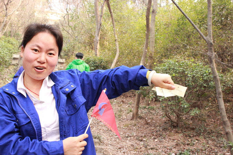 最吸引人的是山頂趣味尋寶活動(dòng),我公司工作人員一大清早就到山頂藏好“寶貝”,靜等尋寶人的到來(lái)。這次尋寶和往年不一樣,是等所有女員工集中后聽(tīng)到哨聲后方可尋寶?!皣u”一聲,尋寶開(kāi)始了,只見(jiàn)同志們有的在草叢和石頭下尋找、有的在窗臺(tái)石縫中查看,有的索性兩眼只看大樹(shù),看看樹(shù)上有沒(méi)有“寶貝”。同志們拿出工作中鍛煉出來(lái)的眼力與細(xì)心,各顯神通,熱火朝天的找尋著。尋到寶的同志們歡呼雀躍,興沖沖地下山兌獎(jiǎng)。沒(méi)尋到寶的同志雖然有些失落,但公司也為她們準(zhǔn)備了紀(jì)念品。