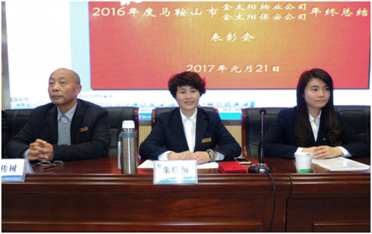 2017年元月21日,馬鞍山市金太陽物業(yè)管理有限公司(金太陽保安服務(wù)有限公司)在馬鞍山市第七中學(xué)多功能報(bào)告廳召開2016年度年終總結(jié)表彰會(huì),表彰過去一年里在公司經(jīng)營(yíng)中做出重要貢獻(xiàn)的先進(jìn)管理處、先進(jìn)管理人員和先進(jìn)員工。公司總經(jīng)理袁夢(mèng)雪作了年終總結(jié)報(bào)告。