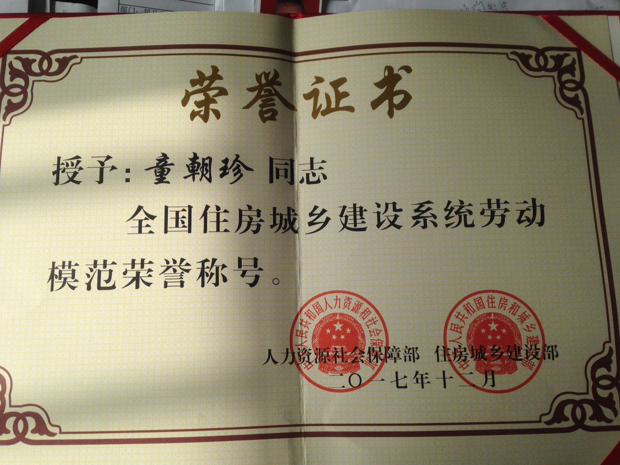 童朝珍先后獲得了“2014年第三季度馬鞍山好人”、“2013-2014年度馬鞍山十佳道德模范”、“2014年度馬鞍山市十大新聞人物”、“馬鞍山市三八紅旗手”、“全國住房和城鄉(xiāng)系統(tǒng)勞動模范”。她的事跡受到中央、省市各級媒體的爭相報道,引起廣大市民普遍贊譽(yù),全市人民特別是廣大黨員干部都將她作為“把工作當(dāng)事業(yè)干”的榜樣。