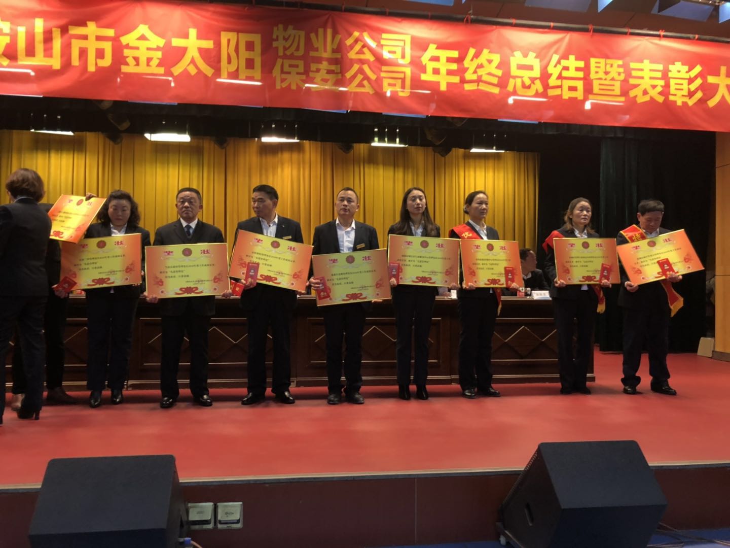 時光荏苒,歲月更迭。轉(zhuǎn)眼間忙碌的一年已經(jīng)過去,伴隨著激情與挑戰(zhàn),新的一年即將到來。值此辭舊迎新之際,馬鞍山市金太陽物業(yè)管理(保安服務(wù))有限公司“2018年度金太陽物業(yè)管理(保安服務(wù))有限公司年終總結(jié)暨表彰大會”于2019年1月19日下午13:00準(zhǔn)時在市新三館隆重召開?,F(xiàn)場一百多位員工在此刻歡聚一堂,共話今夕,“金太陽”兩公司董事長朱曉梅女士、總經(jīng)理袁夢雪女士、執(zhí)行經(jīng)理朱曉軍女士、當(dāng)涂縣分公司總經(jīng)理盛傳樹、鄭蒲港新區(qū)分公司負責(zé)人、銅陵市分公司負責(zé)人、各管理處負責(zé)人等出席盛會。
