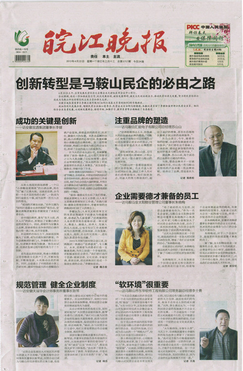 董事長(zhǎng)朱曉梅就《創(chuàng)新轉(zhuǎn)型是馬鞍山民企的必由之路》受媒體采訪